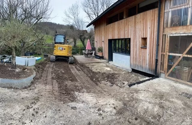 Aménagement d'une cour d'intérieur à Bon-en-Chablais par l'entreprise SEILLER TP.