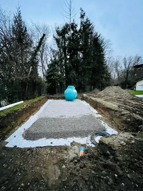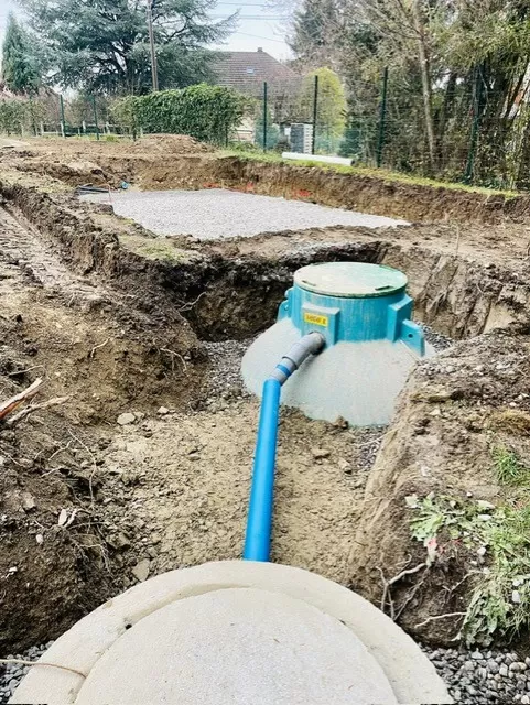 L'entreprise SEILLER TP a résalisé des travaux de conformité des eaux usées et claires avec la mise en place d'une cuve de 3000 litres régulation d'eau de pluie.