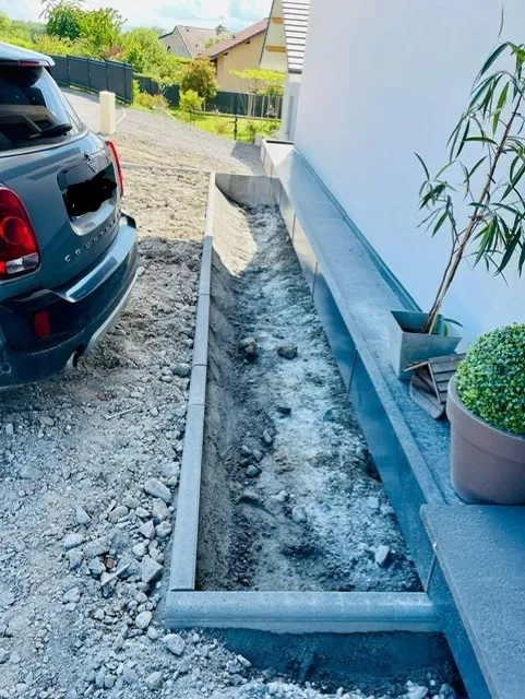 Votre entreprise de terrassement à Yvoire a effectué des travaux chez un particulier: décaissement de la cour, mise en place de de 35 mètres linéaires de bordures délimitation.